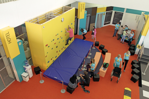 Na výstavě vás čeká hromada milých průvodců, kteří vám ukáží trochu jiný svět, než na který je většina z nás zvyklá. Nejdříve se dostanete například do kuchyně pro nevidomé nebo do koupelny pro vozíčkáře. Ukáží vám různé ulehčující pomůcky. Naučí vás pár výrazů ve znakové řeči. Pomohou vám překonat nástrahy běžného života, ale také ukáží sporty jako je Showdown. Můžete si i vyzkoušet o kolik obtížnější je střelit koš při basketu, když se musíte pohybovat na vozíčku.